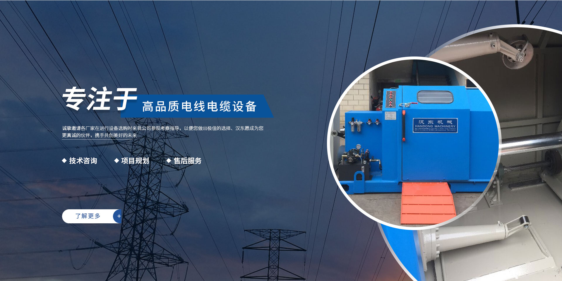 常州漢東機械始創(chuàng)于2006年,是集電線電纜機械設(shè)計、開發(fā)、制造、安裝、調(diào)試為一體化的高科技企業(yè)。本公司自開業(yè)以來,積極引進日本,歐美等國外電線電纜設(shè)備之先進技術(shù),先后成功推出了達到行業(yè)先進水平的電線電纜設(shè)備,主要產(chǎn)品有擠出、繞包、束線、成纜等電線電纜固定設(shè)備。在提供系統(tǒng)設(shè)備的同時,還向客戶提供售前技術(shù)咨詢、項目規(guī)劃、以及售后服務(wù)。我公司本著“以人為本、科技先導、用戶為上”的宗旨,為客戶提供牢靠的產(chǎn)品與省心的服務(wù)。漢東愿成為您更真誠的伙伴,攜手共創(chuàng)美好的未來! 了解更多+